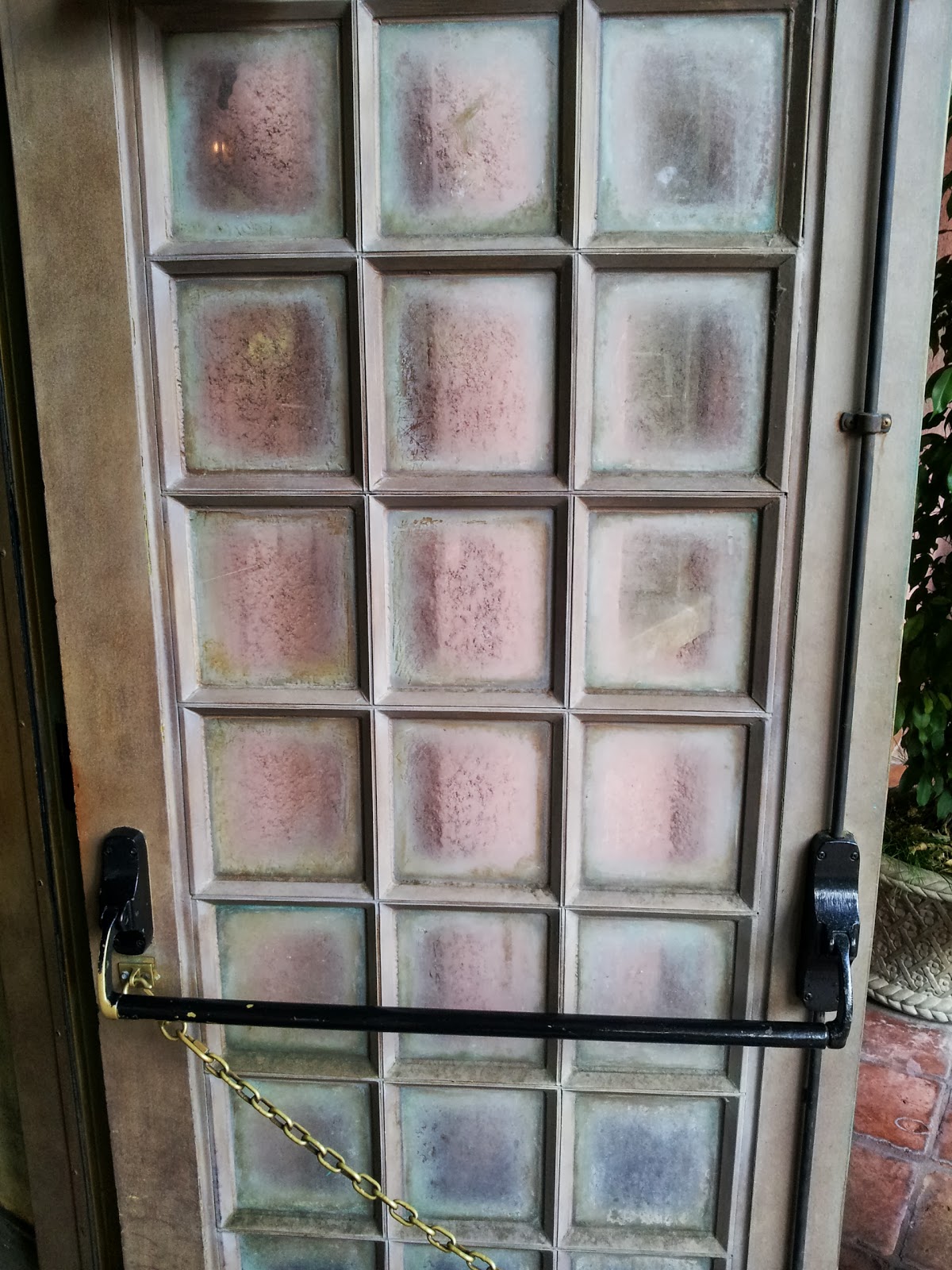 As you exit, you pass the dining room known as the Sunset Room. It's tightly chained up, but appears to be a large dining area for the guests, most likely in use for the party that Halloween night. The door is very beautifully carved, but definitely not budging.